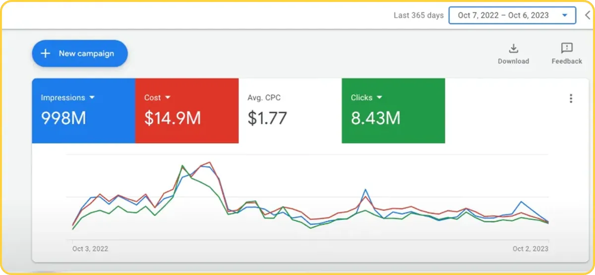 Over the last 12 months, we executed and scaled a high-performance Google Ads strategy that delivered 998 million impressions and 8.43 million clicks at an average CPC of just $1.77, managing a total ad spend of $14.9 million.